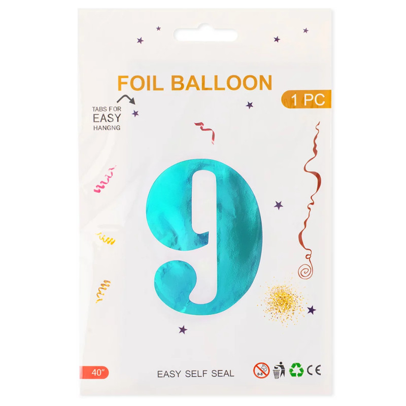 Шар (40''/102 см) Цифра, 9, Тиффани, Металлик, 1 шт. в уп. СмайлБерри