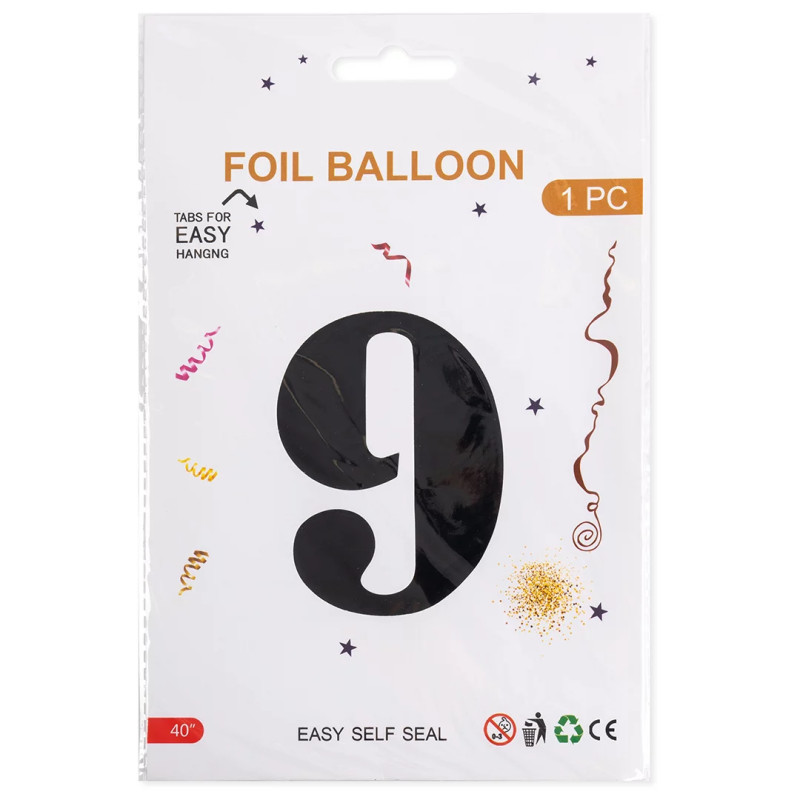 Шар (40''/102 см) Цифра, 9, Черный, Металлик, 1 шт. в уп. СмайлБерри