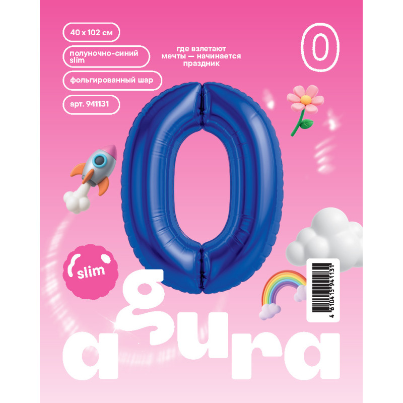 Шар (40''/102 см) Цифра, 0, Slim, Полуночно-Синий, в упаковке 1 шт. Россия