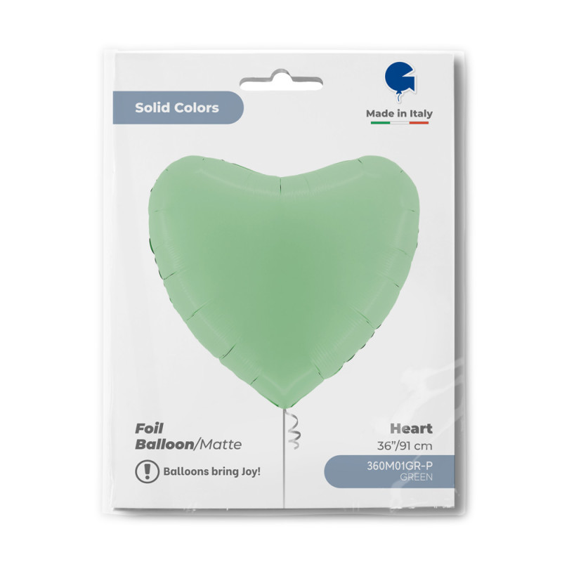 Шар (36''/91 см) Сердце, Нежная мята, Макарунс, 1 шт. Grabo, Италия