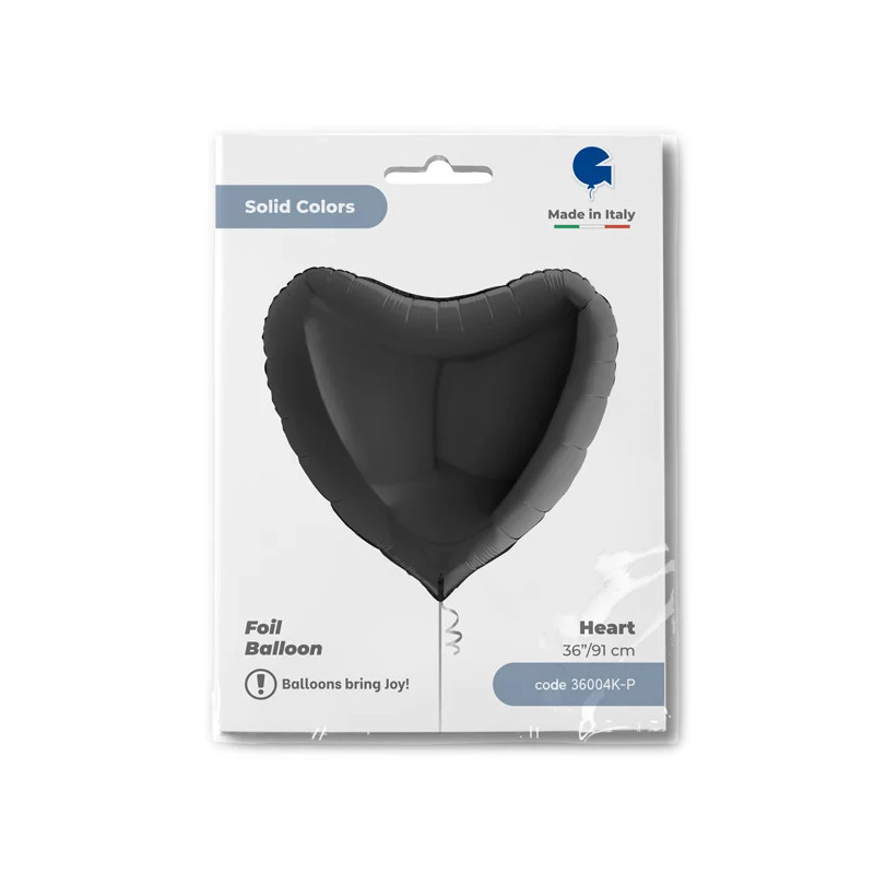 Шар (36''/91 см) Сердце, Черный, 1 шт Grabo, Италия