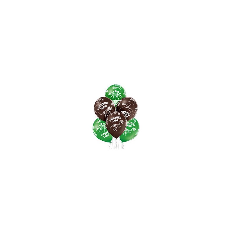Высококачественный шар из натурального латекса. Одного типа - пастель - матовый оттенок шара. Шары с пятисторонним - круговая печать, шелкографическим рисунком в виде скелетов Динозавров, с названиями. Отличный подарок для любителей динозавров. Предназначен для розничной продажи воздушных шариков и тематических оформлений.
