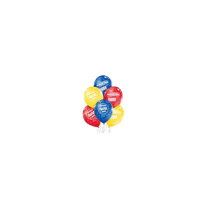 Высококачественный шар из натурального латекса. Ассорти из 3 цветов , одного типа - пастель - матовый оттенок цвета. Шары с пятисторонним - круговая печать с шелкографическим рисунком на тему Лучший Папа в мире, Люблю тебя, Папа. Предназначен для розничной продажи воздушных шариков. Идеальный ассортимент для праздничных оформлений, т.к. при плетении из него гирлянд - рисунок будет очень хорошо виден